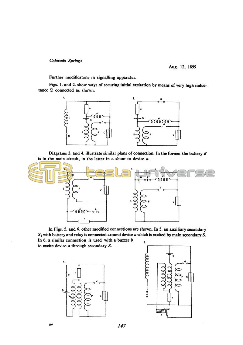 In Figs. 5. and 6, other modified connections are shown. In 5. an auxiliary secondary S1 with battery and relay is connected around device a which is excited by main secondary S. In 6. a similar connection is used with a buzzer b to excite device a through secondary S.