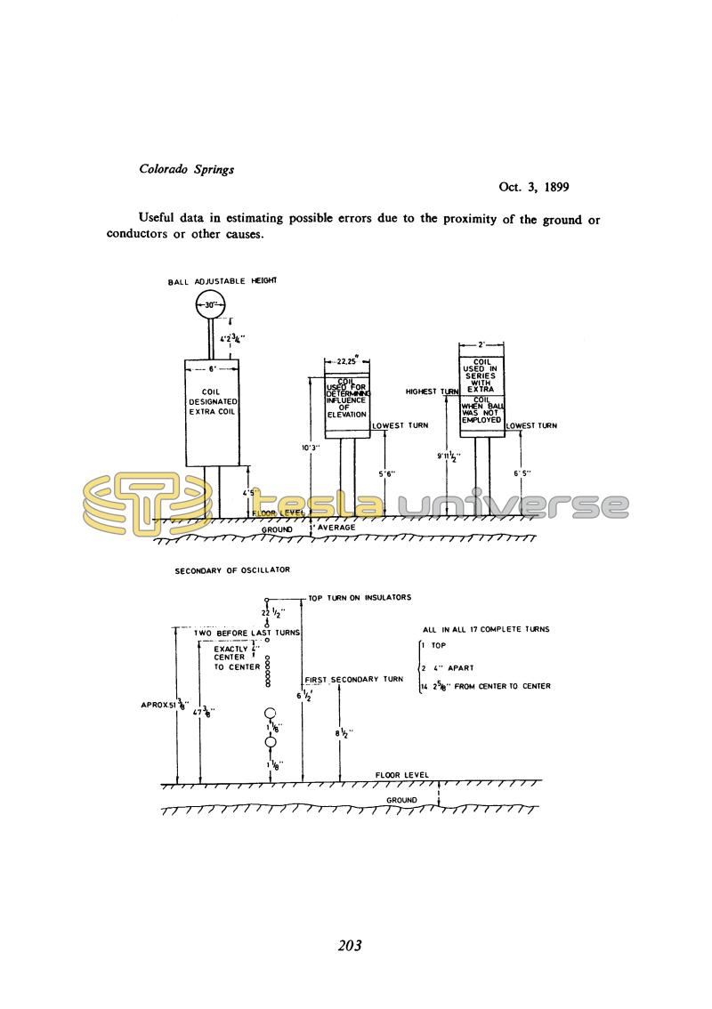 He shows on the figure the layout of several coils which he frequently manipulates. The figure is interesting because it gives information about the laboratory. This information could not be made available by studying numerous photographs. We are talking about a wooden sub-floor which is 30 cm above the ground elevation, coils dimensions, and the winding method of oscillator secondary and primary.