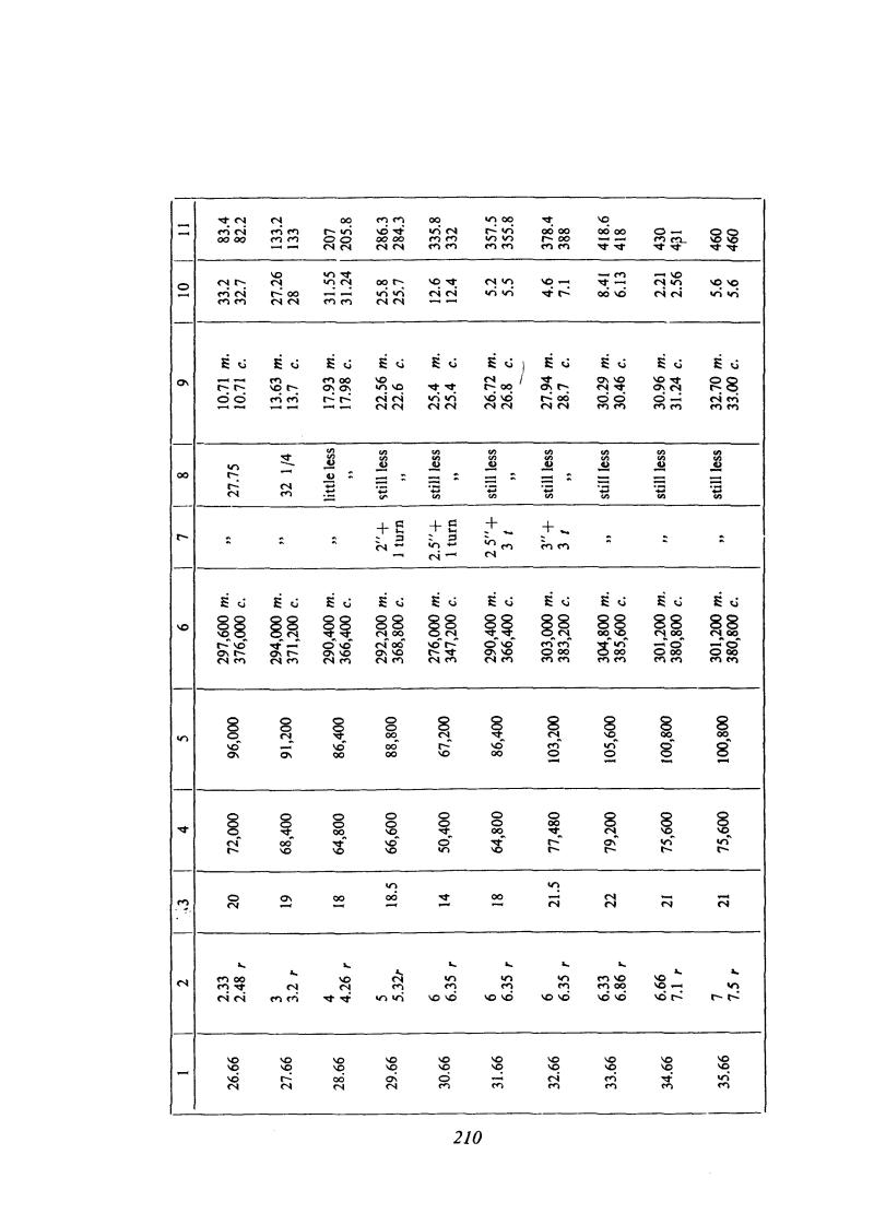 | 31.66 | 6 6.35 r | 18 | 64,800 | 86,400 | 290,400 m. 366,400 c. | 2 5" + 3 t | still less â | 26.72 m. 26.8 c. | 5.2 5.5 | 357.5 355.8 |