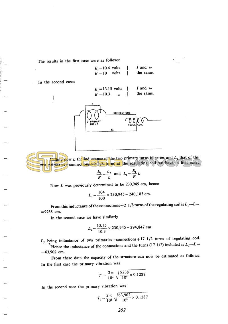 From this inductance of the connections + 2 1/8 turns of the regulating coil is L1 - L = 9238 cm.