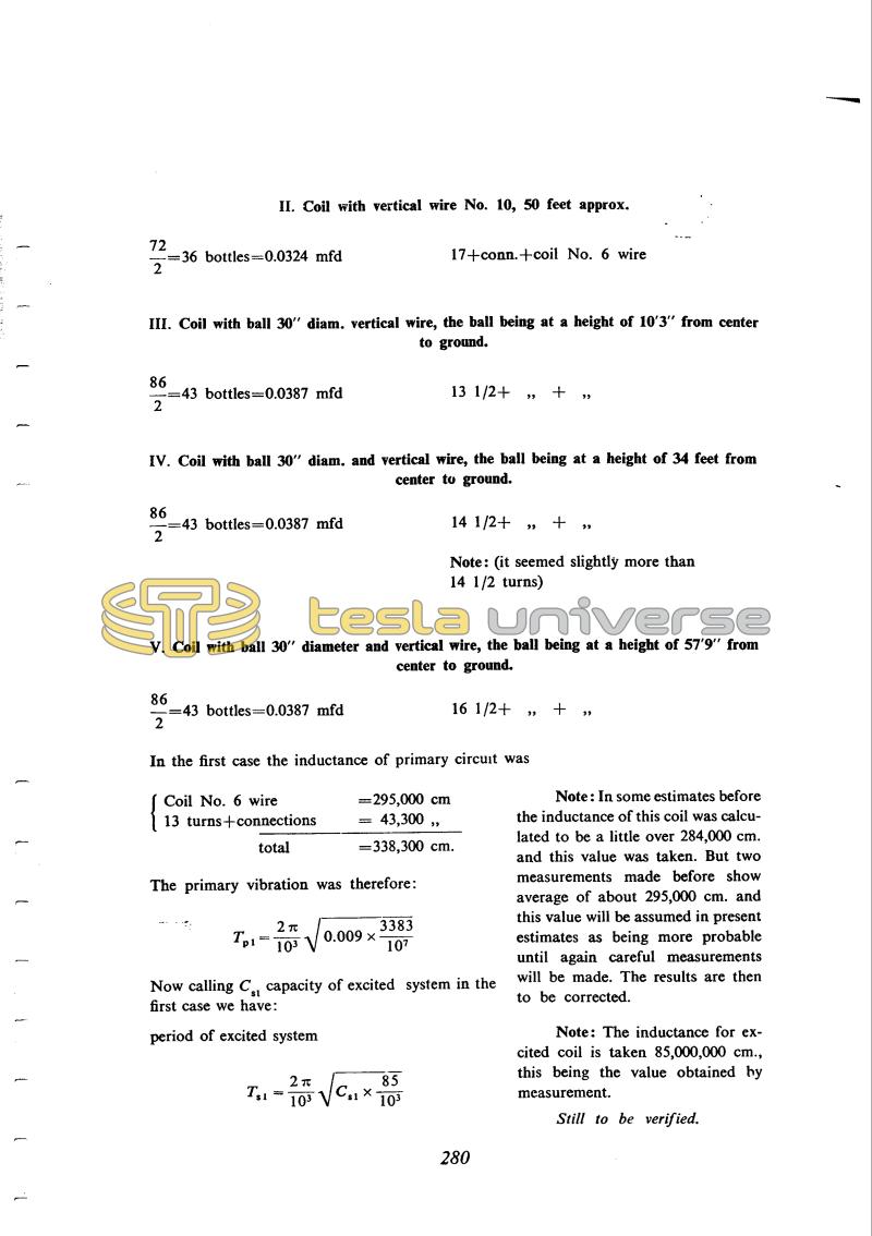 | V. Coil with ball 30" diameter and vertical wire, the ball being at a height of 57' 9" from center to ground. | |