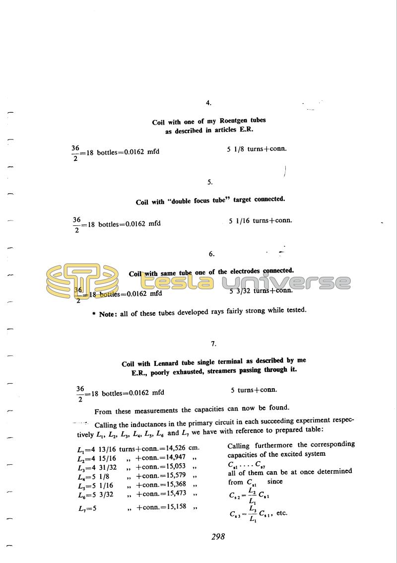 Calling the inductances in the primary circuit in each succeeding experiment respectively L1, L2, L3, L4, L5, L6 and L7 we have with reference to prepared table: