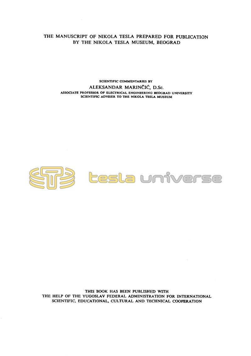 THE MANUSCRIPT OF NIKOLA TESLA PREPARED FOR PUBLICATION BY THE NIKOLA TESLA MUSEUM, BEOGRAD