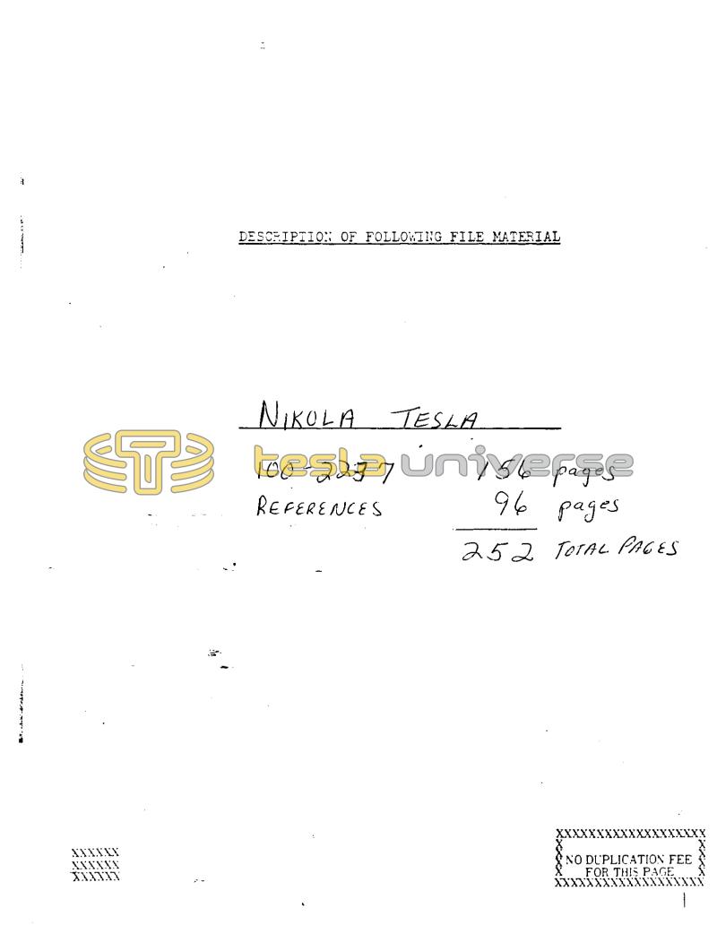 BERITA XXXXX7 1 DESCRIPTION OF FOLLOWING FILE MATERIAL NIKOLA TESLA 100-2237 REFERENCES 156 pages 96 pages 252 TOTAL PAGES NO DUPLICATION FEE FOR THIS PAGE XXXXXXXX