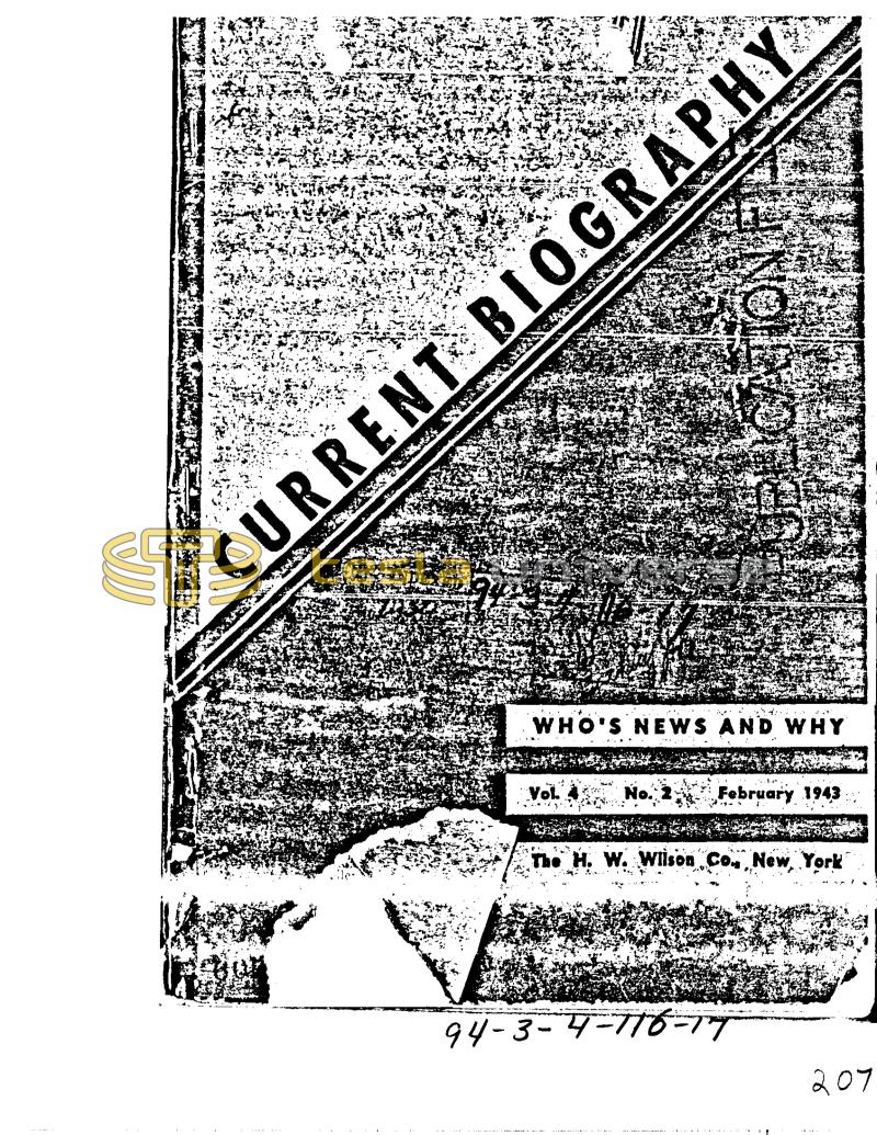 46 CURRENT BIOGRAPHY 4 21 WHO'S NEWS AND WHY Vol. ON FI The H. W. Wilson W. Wilson Co., New York February 1943 94-3-4-716-17 www.Amewataka badan 207