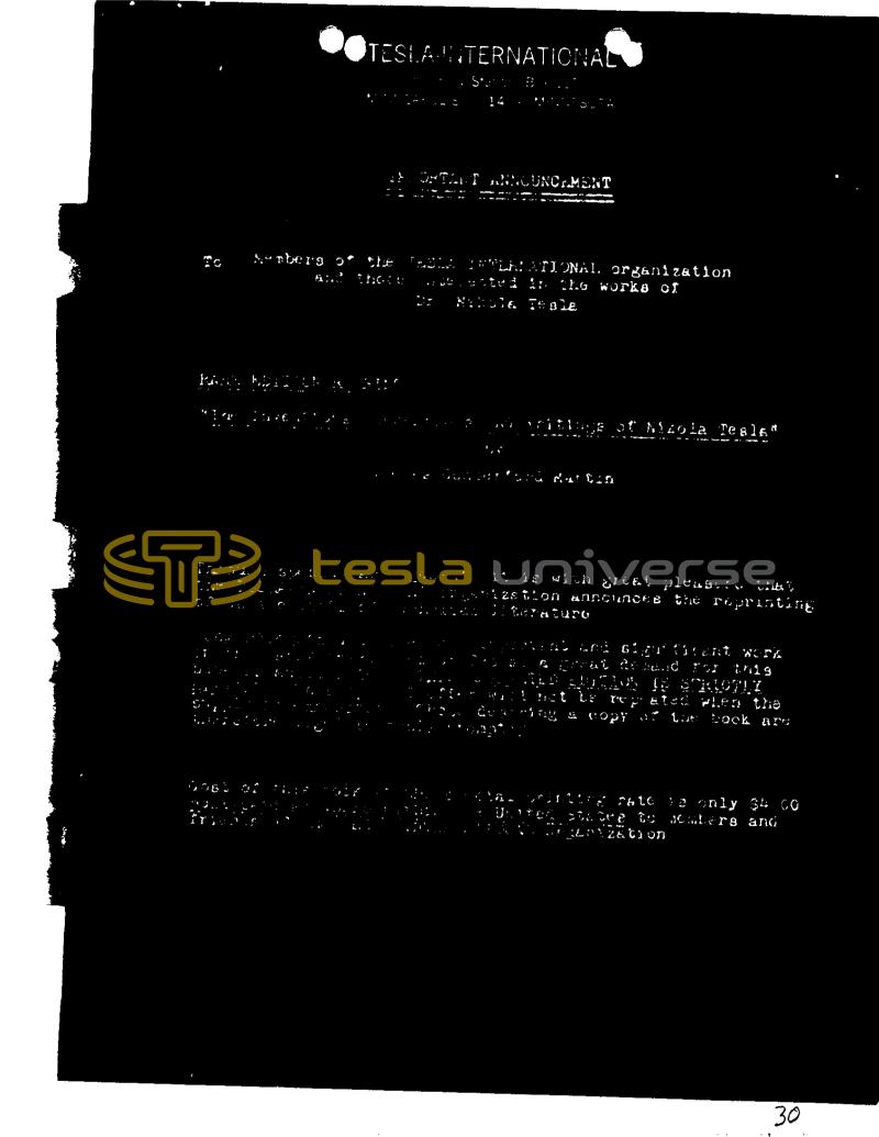 To TESLA INTERNATIONAL SAN R Members O the thate PARA MANTON OFTANT ANNOUNCEMENT TLANATIONAI. organization the works of Nikola Tesla REM SM ritlage of Nicola Tesla" is with great pleasure that zstion announce B the reprinting Citeraturo U ab and Gigut firent work at trend thig X LA SUTIVA JE STRIOTTI repated when the "ing a copy of the book are rate 12 only $4.00 bers and statea to ALP2&tion 30