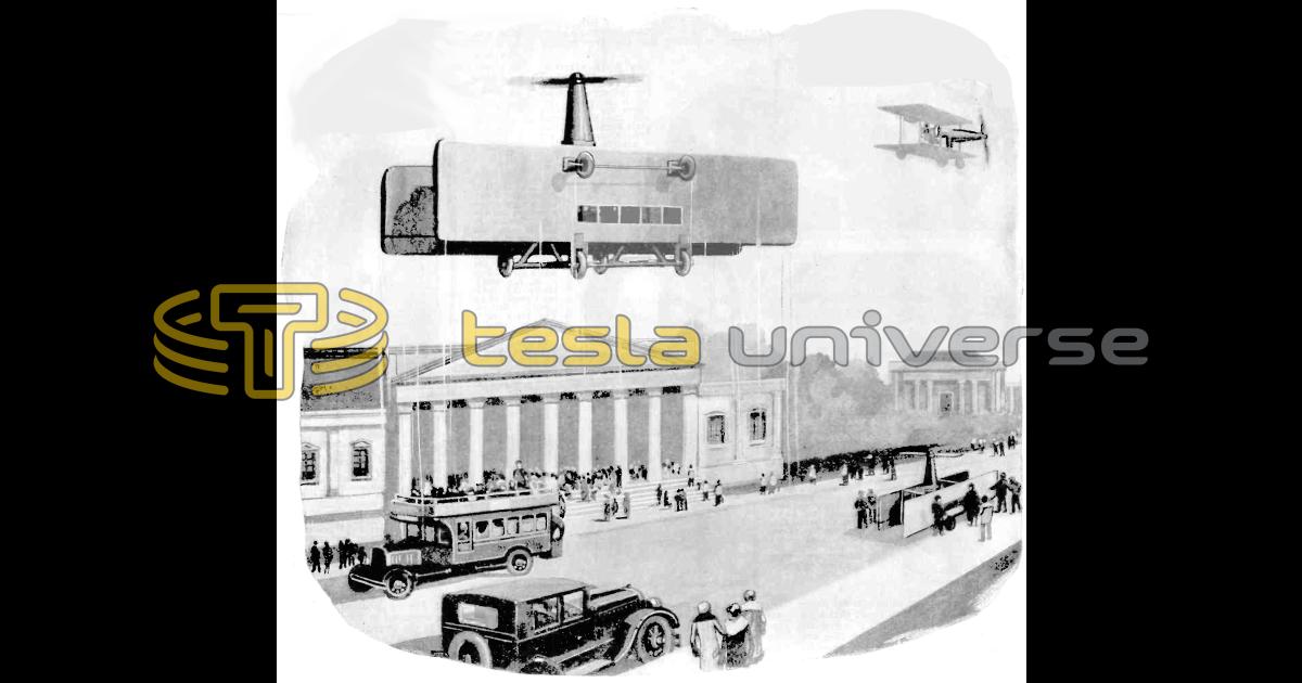 Artist's conception of the vertically-rising helicopter invented by Nikola Tesla