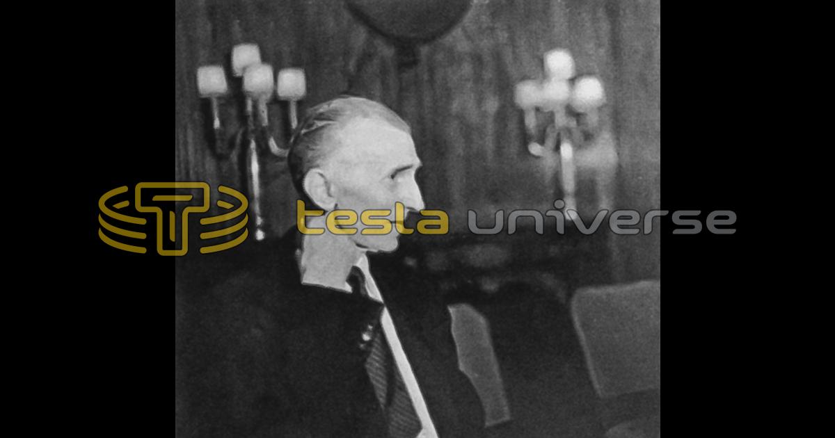 Candid photo taken of Nikola Tesla at a press conference at the Hotel New Yorker, July 10, 1935, on his seventy-ninth birthday.
